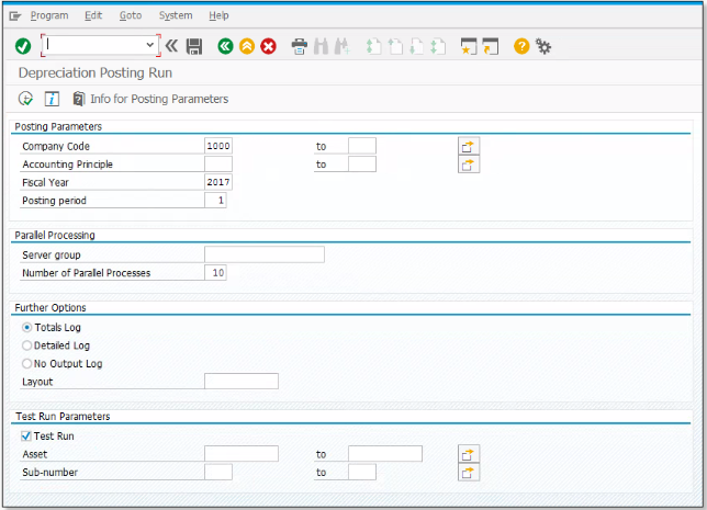 · The selection screen has changed in a few noticeable ways. First, there were four options under “Reason for Posting Run” which are no longer available. In S4HANA new program will correctly determine what type of depreciation run you are making so the options are no longer there.