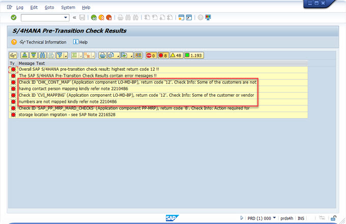 Finally, we can run the pre-check R_S4_PRE_TRANSITION_CHECKS in client 000 to check if CVI problem was resolved.