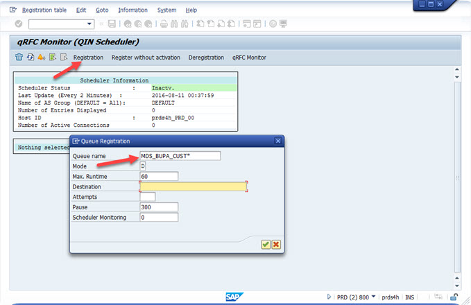 Now back to synchronization control preparation, click on queue processing to register the RFC queues with a * mark at the end of every queue name.