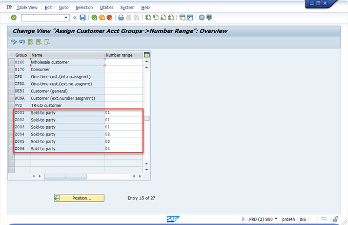 This’s very important, based on the information in this view, we can generally decide which customer account group should be included during the configuration of CI later on. If the “Number Range” column is empty, we can assume that customer account group is not activated in the system.
