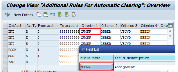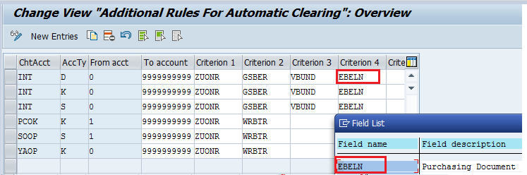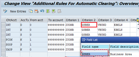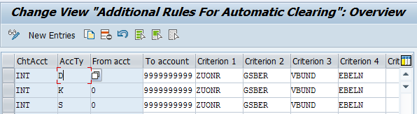 The criteria can be specified for each account type based on a single account or an interval of accounts. You use these criteria to restrict the number of items that are considered to be grouped together. This ensures that only those items that are related to the same business transaction are cleared together.