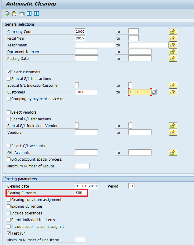 SAP Automatic Clearing – G/L Accounts – Initial Screen