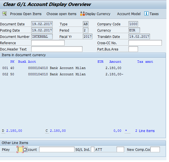 Posting with clearing can be performed for several accounts and currencies simultaneously and using the automatic clearing program.