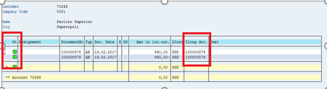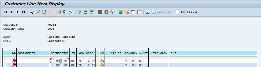 In this example, the documents to be cleared are shown below in FBL5N transaction (customer line items):