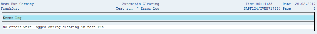 Since there is no errors, we can run the automatic clearing in normal mode. For the final run go back to the initial screen, remove Test run tick selection and click Execute button. The SAP system will perform clearing and show the confirmation of the clearing posting with the generated clearing document number.