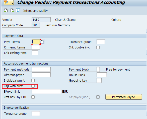 “Clrg with cust.” Checkbox in Vendor Master Record