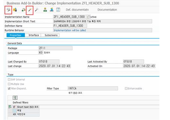 1) 예시 BADI : FI_HEADER_SUB_1300IM => 복사생성