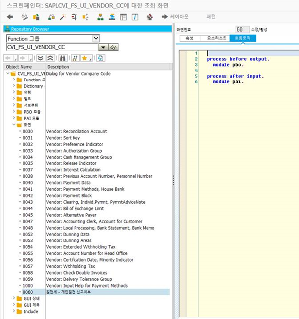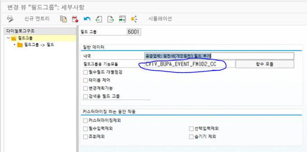 - '필드그룹용 기능모듈'에 함수를 생성하여 화면제어 필요(기존