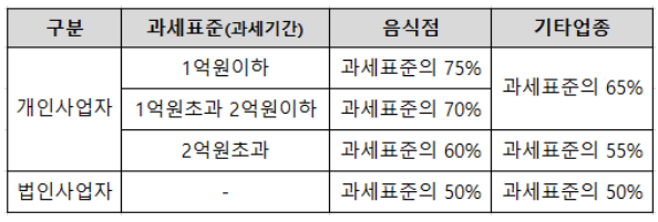 * 위 한도기준은 2022.07.01일 이후 부가가치세 과세표준 및 세액을 신고하는 분부터 2023.12.31일 까지 적용됩니다.